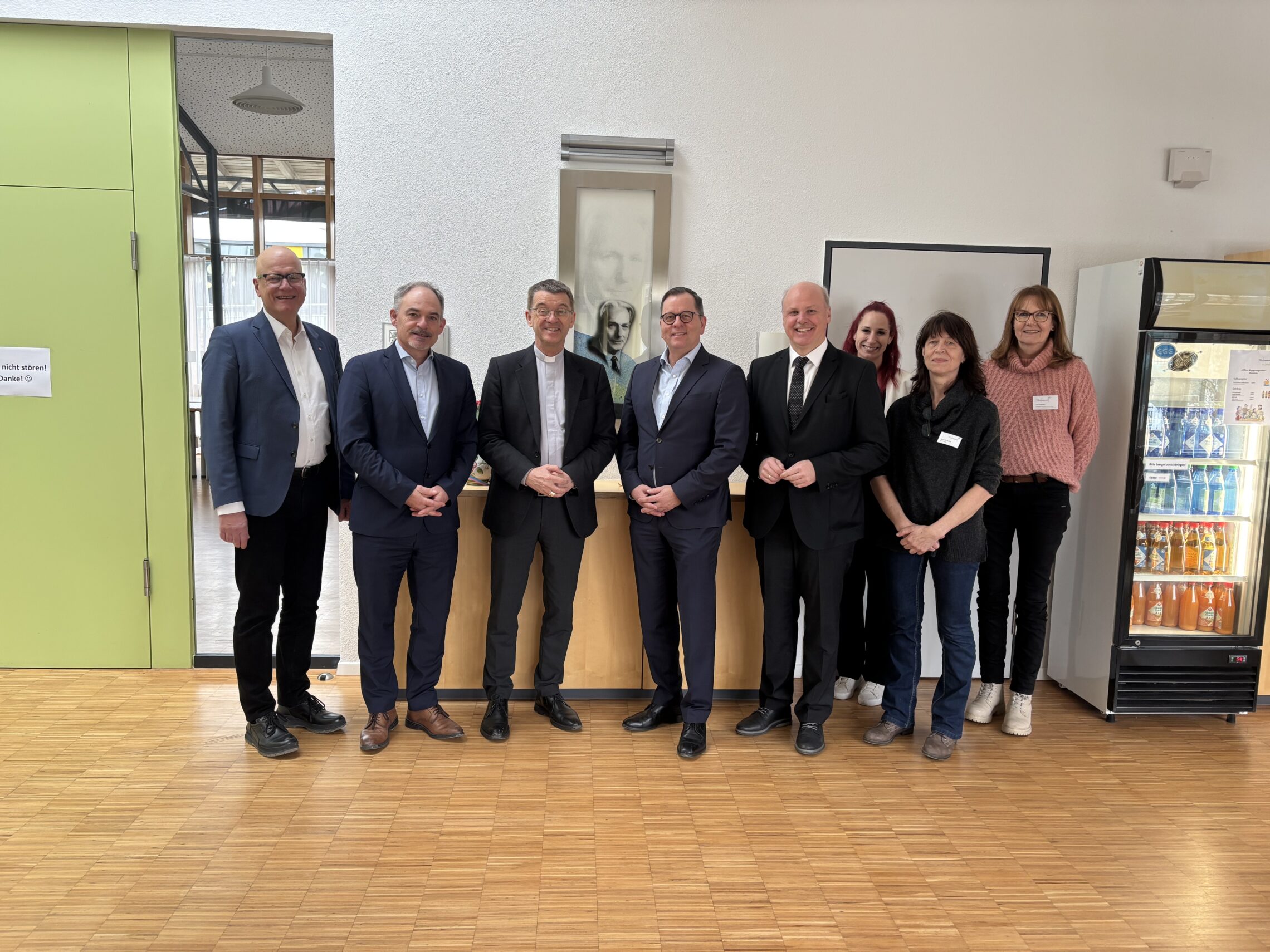 Am Nachmittag standen der Besuch des Pflegeheims St. Johannes in Waldstetten sowie ein Gespräch zur Sozialraumarbeit auf dem Programm. Dabei flossen im Austausch mit Bürgermeister Michael Rembold auch kommunale Perspektiven ein: „Die Vernetzung der vielen Player im Sozialraum schafft ein Umfeld, in dem Menschen gut und gerne weiter zuhause leben wollen oder bestmöglich unterstützt werden“, betonte Rembold. Wegweisend sei hierbei auch die Kooperation mit den Kirchengemeinden und der Stiftung Haus Lindenhof, so der Bürgermeister.