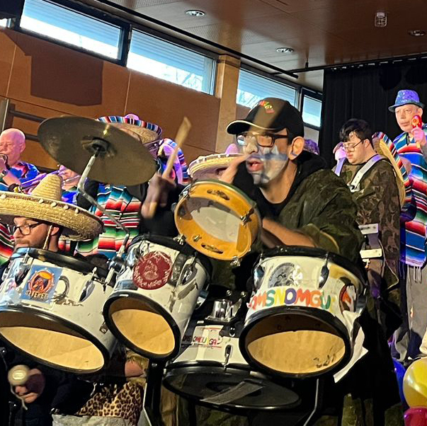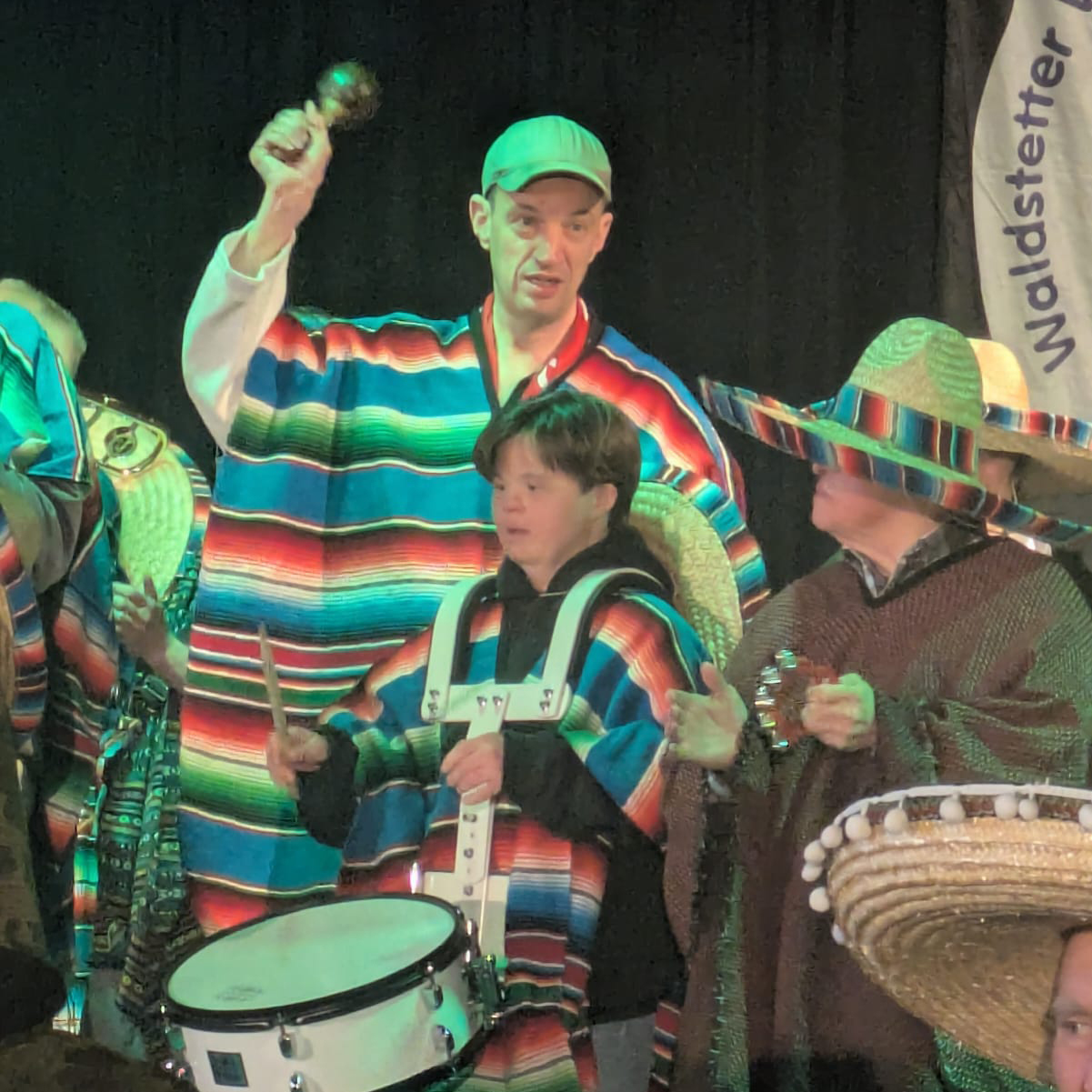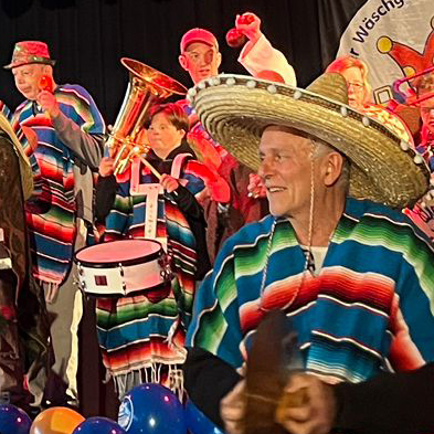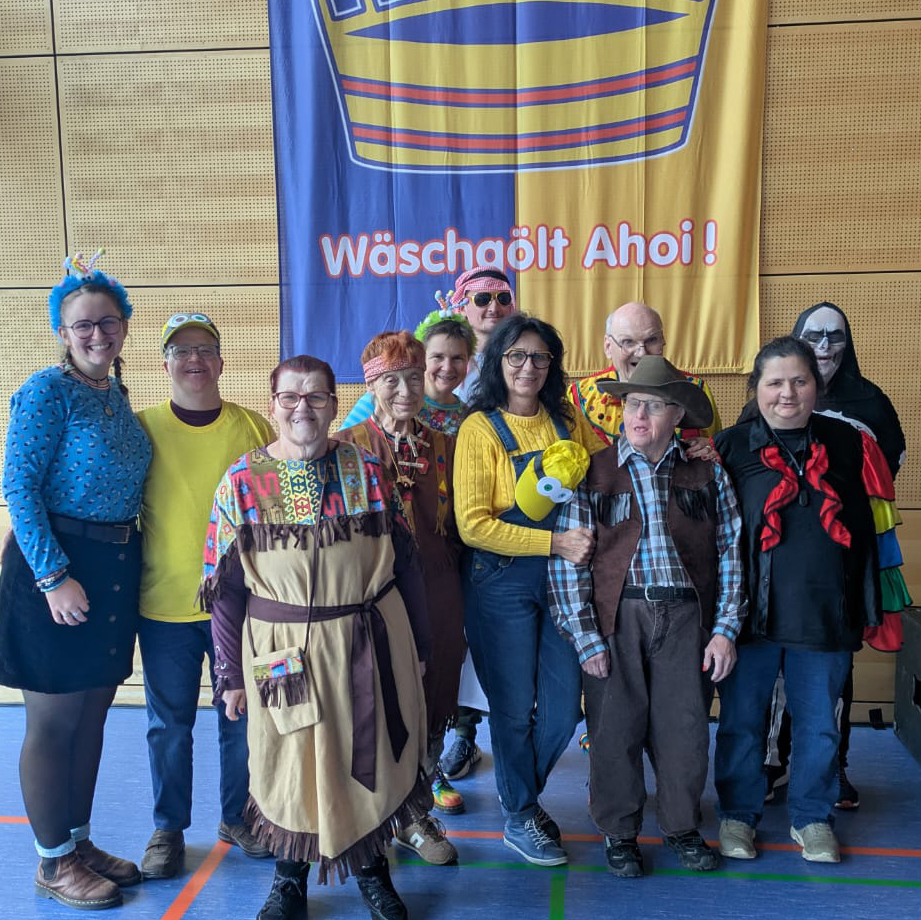 Die inklusive Guggenmusikgruppe Los Krawallos der Stiftung Haus Lindenhof war beim Fasching für Menschen mit und ohne Behinderung der Waldstetter Wäschgölten mit dabei – und hat ordentlich Stimmung gemacht!